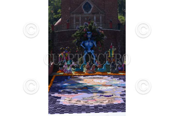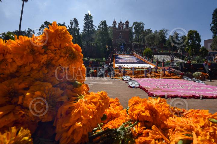 Instalan ofrenda monumental en las escalinatas del Calvario en Metepec, en memoria de las mujeres Muertos a raíz de la violencia, médicos y víctimas del COVID-19.