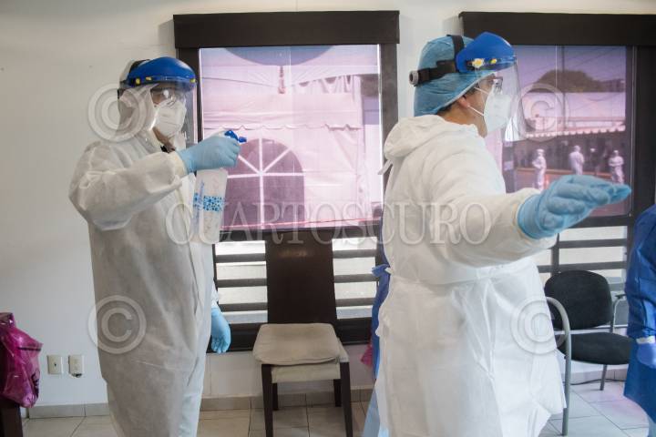 Personas con síntomas de covid-19 continúan asistiendo a la Unidad Temporal de Triage de la Central de Abasto (CEDA) para ser diagnosticados y en su caso ser trasladados a un Hospital para su debida atención.