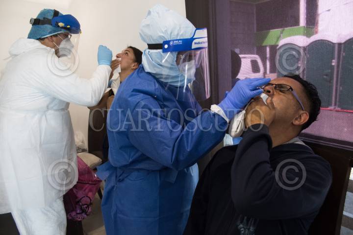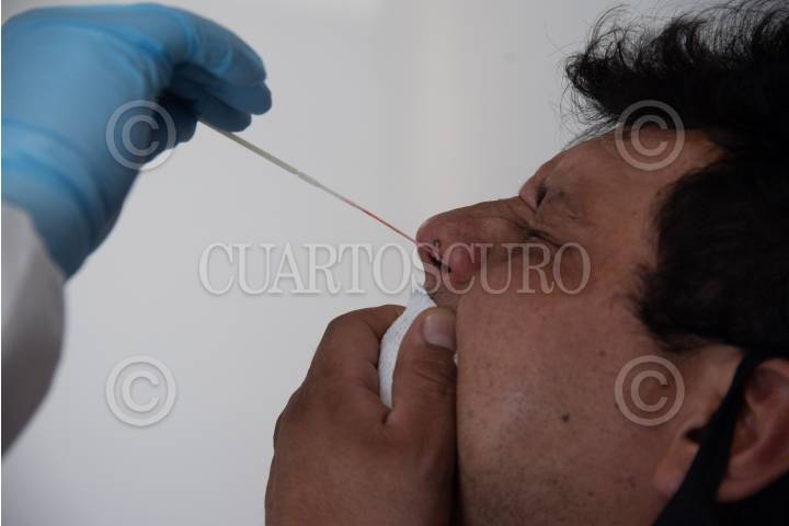 Decenas de pruebas para Covid-19 se toman a diario en el módulo instalado en la Central de Abastos, en donde se atiende a comerciantes y trabajadores del lugar, esto con la finalidad de contener la pandemia.
