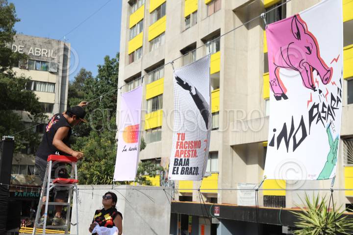 Muestra de carteles durante las jornadas de amor y libertad, en la Plaza de las Tres Culturas.