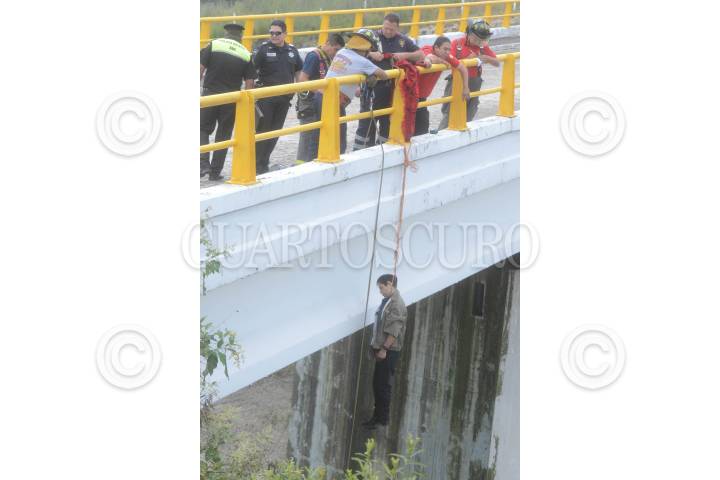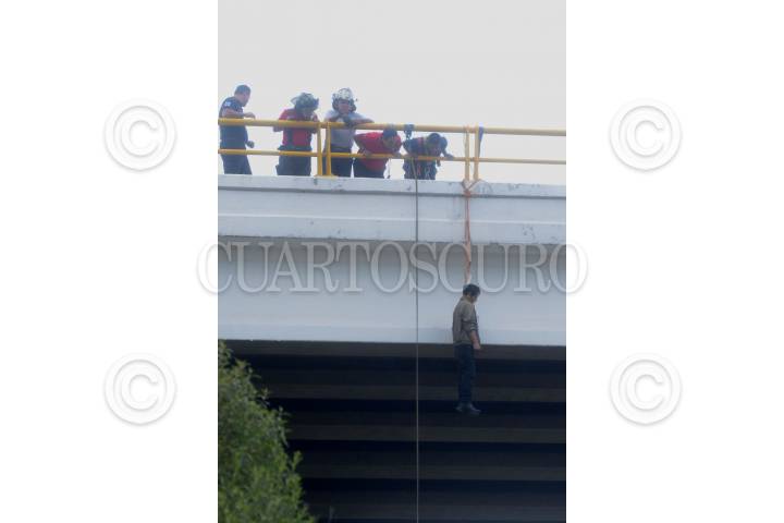 ATIZAPAN ESTADO DEMÉXICO; 01OCTUBRE2013.- Un hombre de aproximadamente 50 años, fue hallado colgado de un puente sobre la autopista Chamapa Lechería a la altura del Km. 22, colonia San Mateo Nopala. Policías de este perímetro acudieron para iniciar las investigaciones correspondientes de lo que aparentemente se trata de un homicidio según policias de Atizapán. FOTO: LUIS CARBAYO /CUARTOSCURO.COM