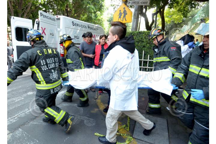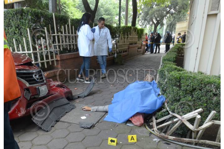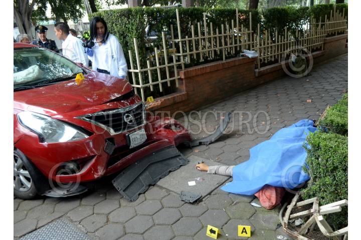 CIUDAD DE MÉXICO, 24SEPTIEMBRE2019.- El no respetar las señales de tránsito origino la muerte de una mujer que esperaba cruzar avenida Miguel Ángel de Quevedo, al cruce con la calle de Cerro de Hombre, en la colonia Santa Catarina. El percance se suscitó cuando el conductor de un auto compacto intento dar una vuelta prohibida chocando con otra unidad, esta última salió disparada hacia la banqueta en donde se encontraba la víctima. FOTO: ARMANDO MONROY CUARTOSCURO.COM