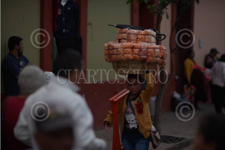 SAN CRISTÓBAL DE LAS CASAS, CHIAPAS, 20MARZO2019.- La pobreza en el estado se ha incrementado año con año, miles de personas viven con un salario que va por debajo del costo de la canasta básica. Cientos de mujeres pasan los días intentando vender botanas o artesanías a los turistas en la calles del municipio. FOTO: ISABEL MATEOS /CUARTOSCURO.COM