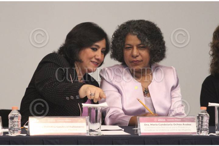 CIUDAD DE MÉXICO, 25NOVIEMBRE.- Irma Eréndira Sandoval Ballesteros, titular de la Secretaría de la Función Pública y Marina Candelaria Ochoa, comisionada nacional para prevenir y erradicar la violencia contra las mujeres, encabezaron la presentación de las adhesiones de mejora a los protocolos para la Prevención, Atención y Sanción del Hostigamiento Sexual y Acoso Sexual y de Actuación con Perspectiva de Género en Sede Administrativa en la Investigación y Substanciación de Quejas y Denuncias, esto en el marco del Día Internacional de la Eliminación de la Violencia contra las Mujeres, en el Auditorio “Elvia Carrillo Puerto” de la sede de la secretaría. FOTO: ROGELIO MORALES /CUARTOSCURO.COM