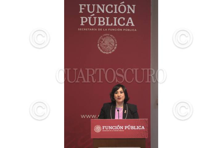 CIUDAD DE MÉXICO, 25NOVIEMBRE.- Irma Eréndira Sandoval Ballesteros, titular de la Secretaría de la Función Pública, encabezó la presentación de las adhesiones de mejora a los protocolos para la Prevención, Atención y Sanción del Hostigamiento Sexual y Acoso Sexual y de Actuación con Perspectiva de Género en Sede Administrativa en la Investigación y Substanciación de Quejas y Denuncias, esto en el marco del Día Internacional de la Eliminación de la Violencia contra las Mujeres, en el Auditorio “Elvia Carrillo Puerto” de la sede de la secretaría. FOTO: ROGELIO MORALES /CUARTOSCURO.COM