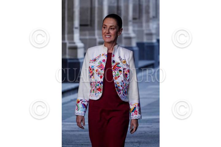 CIUDAD DE MÉXICO, 13NOVIEMBRE2024.- Claudia Sheinbaum, presidenta de México, arribó para dar el anuncio de Original Encuentro de Arte Textil Mexicano en el patio central del Palacio Nacional. FOTO: GALO CAÑAS/CUARTOSCURO.COM
