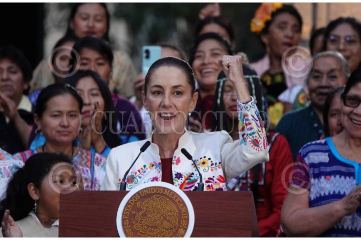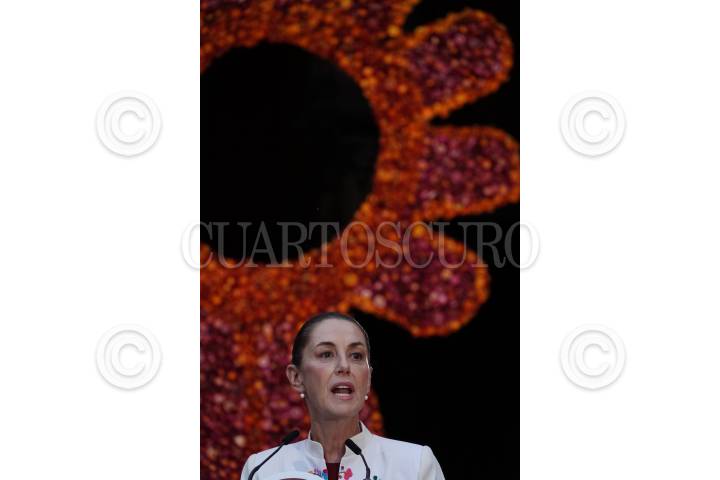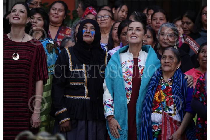 CIUDAD DE MÉXICO, 13NOVIEMBRE2024.- Claudia Sheinbaum, presidenta de México, encabezó el anuncio de Original Encuentro de Arte Textil Mexicano en el patio central del Palacio Nacional. FOTO: GALO CAÑAS/CUARTOSCURO.COM