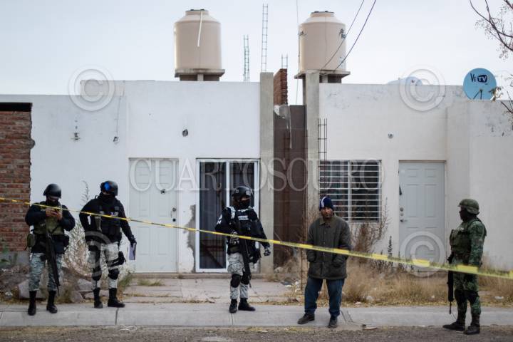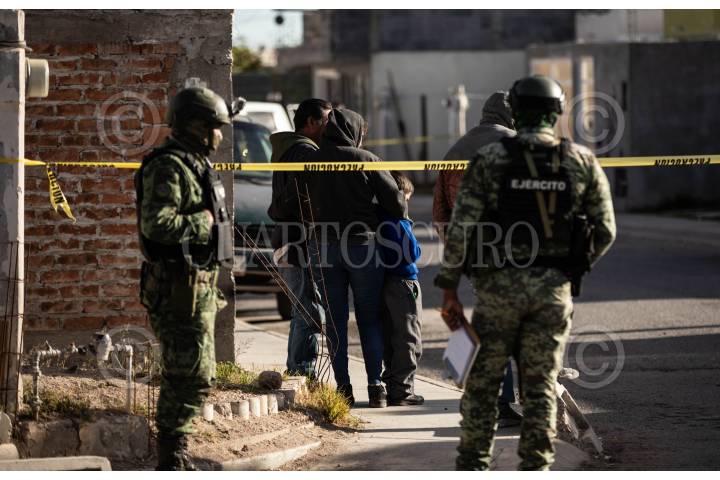 GUADALUPE, ZACATECAS, 08NOVIEMBRE2023.- Susi y Analhy, madre e hija fueron asesinadas en el interior de su domicilio la mañana de este miércoles. Alrededor de las 7:30 hrs familiares localizaron sin vida a madre e hija, de 31 y 14 años, en el interior de una recámara del domicilio No. 3 en la calle Soyate, Fraccionamiento La Comarca. Policías municipales y paramédicos de Protección Civil llegaron para confirmar la muerte de las mujeres por heridas de arma de fuego y asegurar la escena. Más tarde llegaron al lugar Policía de Investigación y peritos de la Coordinación General de Asuntos Periciales, quienes realizaron las primeras investigaciones y levantamiento de indicios del crimen. FOTO: GENARO NATERA /CUARTOSCURO.COM