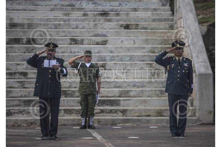 MORELIA, MICHOACÁN, 25AGOSTO2016.- El General de División Diplomado de Estado Mayor, Pedro Felipe de Jesús Gurrola, dio posesión al General Brigadier Diplomado, Alejandro Silva Hernández, como Jefe Regional de Adiestramiento y Director del Centro de Adiestramiento Regional de la XII Región Militar. El acto se llevó a cabo en el "Predio Peña del Coyote". FOTO: ALAN ORTEGA /CUARTOSCURO.COM