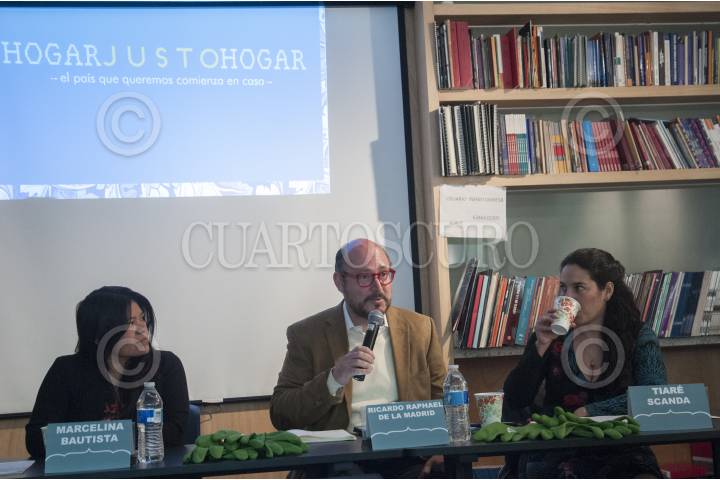 MÉXICO, D.F., 26ENERO2015.- Marcelina Bautista, líder de empleadas del hogar; Ricardo Raphael, analista político, y la actriz Tiaré Scanda, ofrecieron una conferencia de prensa para presentar la organización “Hogar Justo Hogar”, que busca que las mujeres y hombres empleadores del hogar, conformen un gran colectivo con la tarea de avanzar en el respeto de los derechos laborales de las trabajadoras domésticas, que se estiman en el país en 2.1 millones de personas. FOTO: DIEGO SIMÓN SÁNCHEZ /CUARTOSCURO.COM