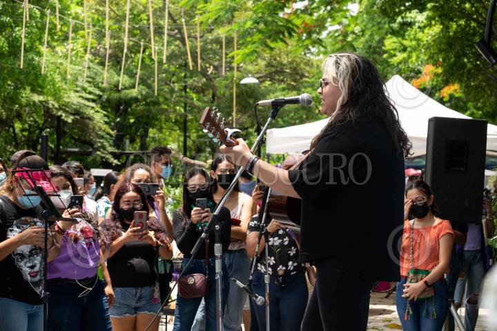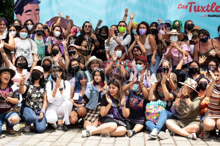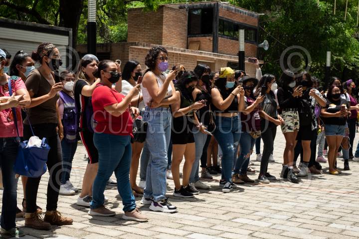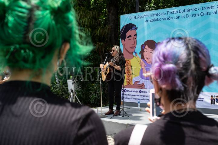 Protesta en la plaza pública Karls Platz por parte de mujeres de la comunidad somalí y colectivas feministas, en donde participaron mujeres de la Fuerza Aérea Zapatista del EZLN.