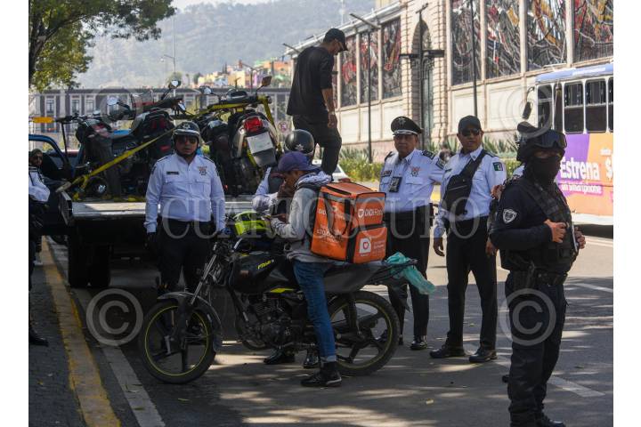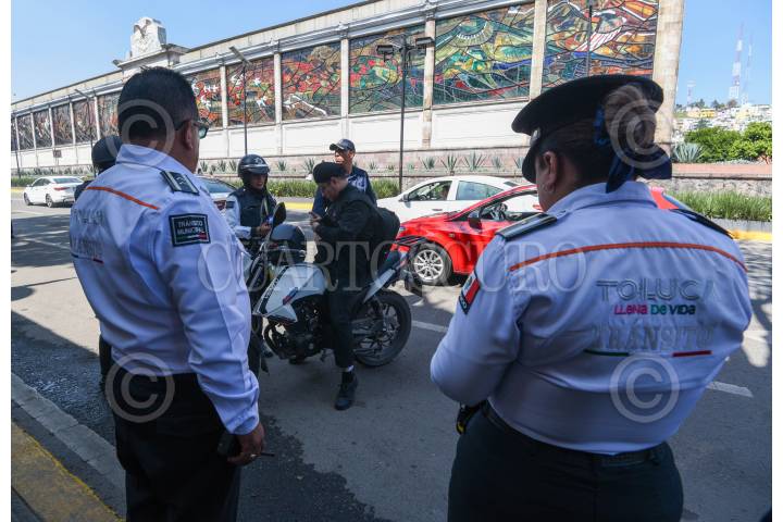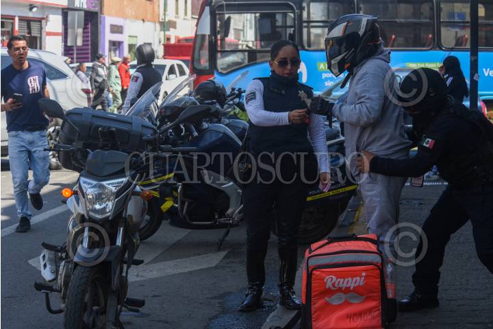 TOLUCA, ESTADO DE MÉXICO, 06NOVIEMBRE2024.- La Policía Municipal de Toluca realiza el operativo “Moto Segura” en la zona centro de la capital mexiquense, para combatir los llamados motoratones, la delincuencia al de Tecate estos operativos han optado por moverse a la periferia de la ciudad y ahora delinquen en delegaciones como San Pedro Toyoltepec, El Seminario, San Mateo Otzacatipán y Calixtlahuaca. FOTO: CRISANTA ESPINOSA AGUILAR /CUARTOSCURO.COM