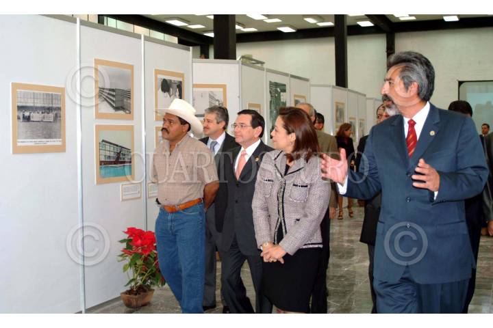 MEXICO, D. F. 09DICIEMBRE2004.- Julio Cesar Pulido Contreras, presidente municipal de Calakmul; Jorge Carlos Hurtado Valdez, Gobernador de Campeche; Josefina Vázquez Mota, Secretaria de Desarrollo Social y Enrique Villa Rivera, director general del Instituto Politécnico Nacional; recorren una exposición en el marco de la Tercera Brigada Multidisciplinaria de Servicio Social IPN 2004. FOTO: IPN/CUARTOSCURO.COM