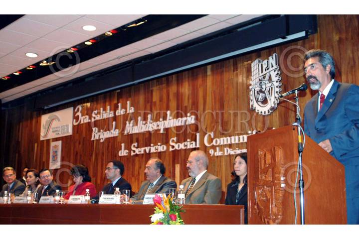 MEXICO, D. F. 09DICIEMBRE2004.- Enrique Villa Rivera, director general del Instituto Politécnico Nacional, durante su participación en el marco de la Tercera Brigada Multidisciplinaria de Servicio Social IPN 2004. FOTO: IPN/CUARTOSCURO.COM