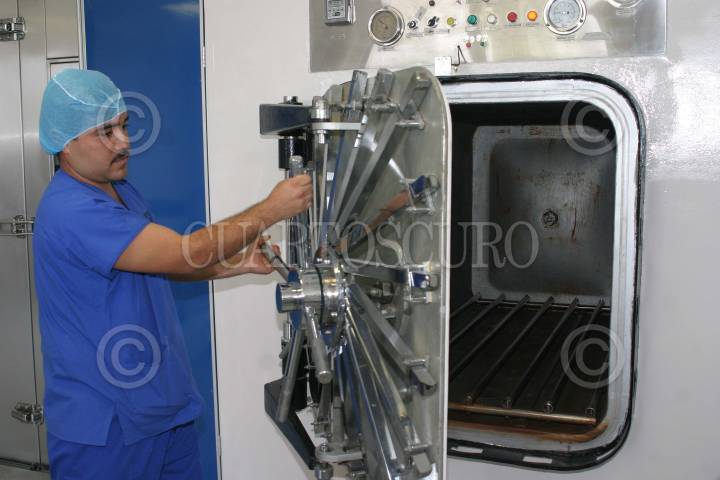 CUERNAVACA, MORELOS18FEBRERO2005.-Un trabajador de la Unidad de Ciencias Genómicas del Centro Regional de Investigación Multidisciplinaria de la UNAM, muestras un horno autoclave de esterilización que sirve para purificar el material con el que se trabaja en el centro de investigación. FOTO: Moisés Pablo/CUARTOSCURO.COM