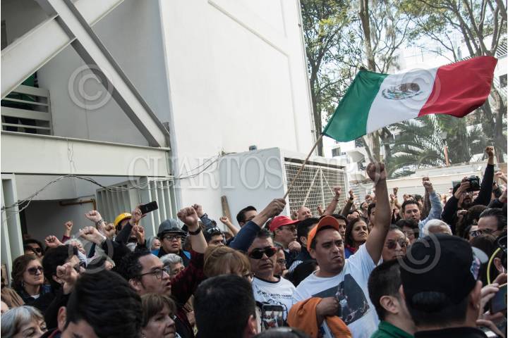 CIUDAD DE MÉXICO, 19SEPTIEMBRE2018.- Damnificados del Multifamiliar Tlalpan y otros inmuebles en la Ciudad de México, conmemoraron el primer aniversario del sismo 19S realizando una misa, un minuto de silencio y una cadena humana alrededor del predio 1C que se colapsó ese día. FOTO: ARMANDO MONROY /CUARTOSCURO.COM