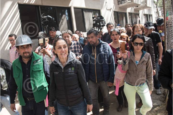 Claudia Sheinbaum, jefa de Gobierno, César Cravioto Romero, titular de la Comisión para la Reconstrucción, y vecinos realizaron un recorrido y supervisaron los avances de las obras de reconstrucción del Multifamiliar Tlalpan.