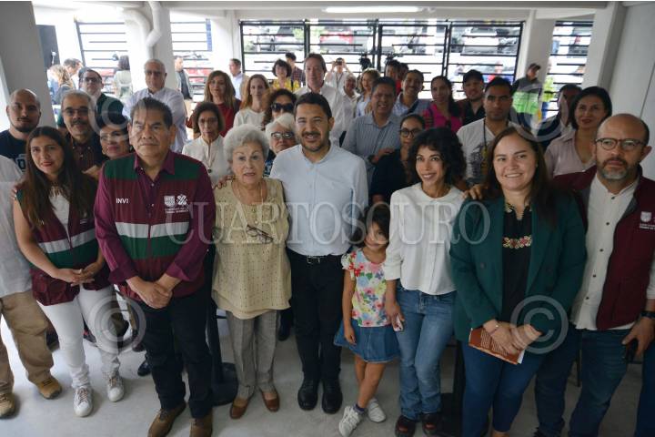 Familias del Multifamiliar de Tlalpan se toman una fotografía durante la entrega de construcción de los predios