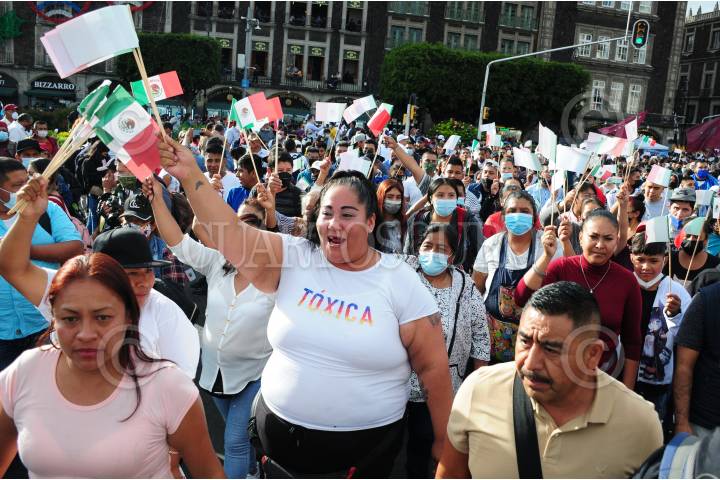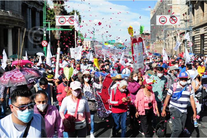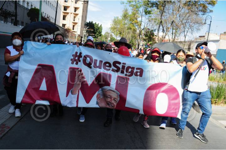 Seguidores de Andrés Manuel López Obrador avanzan rumbo al Zócalo.