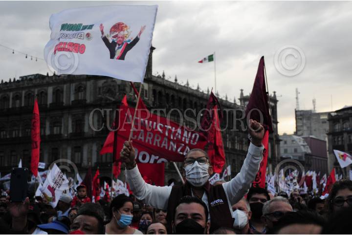 Seguidores de AMLO llegan a la plancha del Zócalo para apoyar al mandatario.