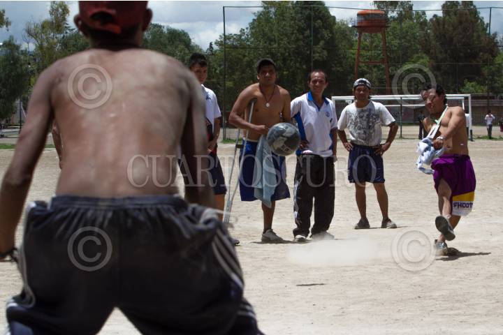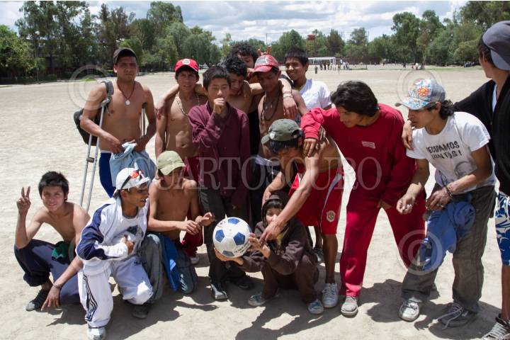 MÉXICO, D.F., 09JULIO2012.- Jóvenes y niños en situación de calle, después de asistir a la ceremonia de inauguración del mundialito de fútbol callejero en el Deportivo Oceanía, realizaron un encuentro amistoso fuera del torneo en uno de los campos de este deportivo. FOTO: GUILLERMO PEREA /CUARTOSCURO.COM