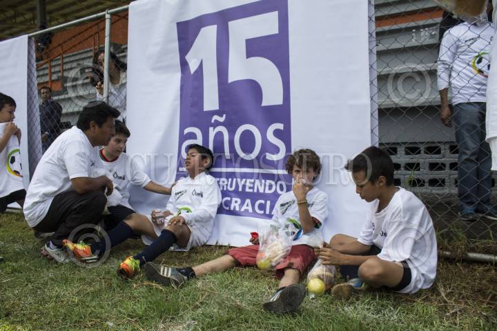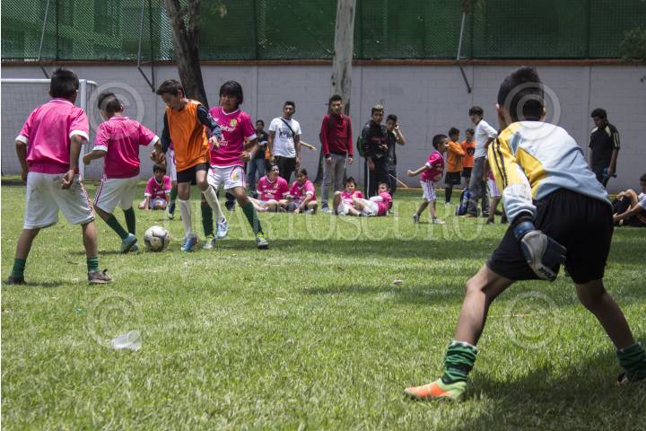 MEXICO, D.F., 21JUNIO2014.- Equipos de fútbol infantil de diferentes dependencias gubernamentales se enfrentaron el día de hoy en el club deportivo del STC Metro, en el torneo Mundialito: Por la democracia, con el que se busca promover valores cívicos a través del deporte. Los equipos provenían de la SEDESOL, IEDF, SSPDF y el sindicato del STC Metro. FOTO: DAVID POLO /CUARTOSCURO.COM