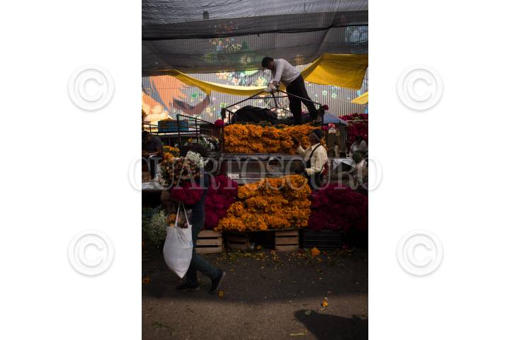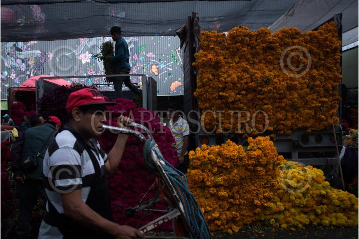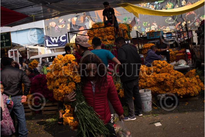 CIUDAD DE MÉXICO, 30OCTUBRE2019.- Acercándose la celebración del Día de Muertos, citadinos se acercan al Mercado Jamaica, famoso por la venta de flores, para abastecerse de flor de Cempasúchil, la cual ha tenido un uso ritual desde tiempos prehispánicos y, a la fecha, su uso continúa como parte de la decoración en el altar de muertos. La flor, que según leyendas prehispánicas nació del contacto de una lágrima del dios sol Tonatiuh y el cuerpo de una mujer llamada Xóchitl, también es conocida por su nombre científico "Tagetes patula". Las flores de Cempasúchil que se ofertan en este mercado de la Ciudad de México provienen, en su mayoría, de Atlixco, Puebla. FOTO: PEDRO ANZA /CUARTOSCURO.COM