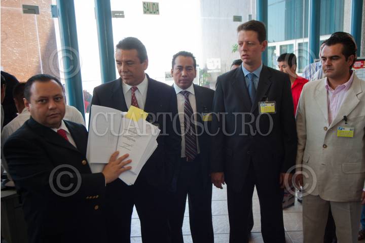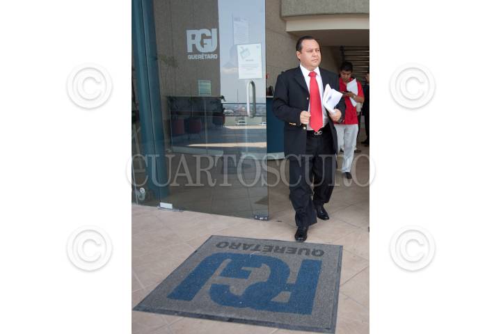 QUERETARO, QUERETARO, 09JUNIO2010.- Braulio Guerra Urbiola, Presidente del PRI estatal y regidor de la capital del estado acompañado de cuatro regidores del mismo cabildo se presentaron a presentar una denuncia ante la Procuraduria General de Justicia (PGJ) en la Coordinación de Investigación de los delitos cometidos por servidores públicos, por los delitos de ejercicio indebido de servidor público y negociaciones ilícitas, en contra de servidores públicos municipales de la administración 2006-2009 y que implica a Alejandro González Valle, hermano del entonces presidente municipal. FOTO: DEMIAN CHAVEZ/CUARTOSCURO.COM