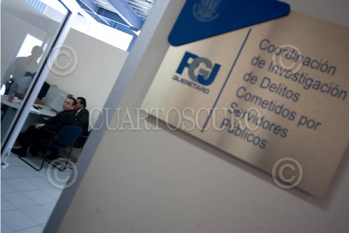 QUERETARO, QUERETARO, 13JUNIO2010.- Braulio Guerra Urbiola, presidente del PRI estatal y regidor de la capital del estado acompañado de cuatro regidores del mismo cabildo se presentaron a presentar una denuncia ante la Procuraduria General de Justicia (PGJ) en la Coordinación de Investigación de los delitos cometidos por servidores públicos, por los delitos de ejercicio indebido de servidor público y negociaciones ilícitas, en contra de servidores públicos municipales de la administración 2006-2009 y que implica a Alejandro González Valle, hermano del entonces presidente municipal. FOTO: DEMIAN CHAVEZ/CUARTOSCURO.COM