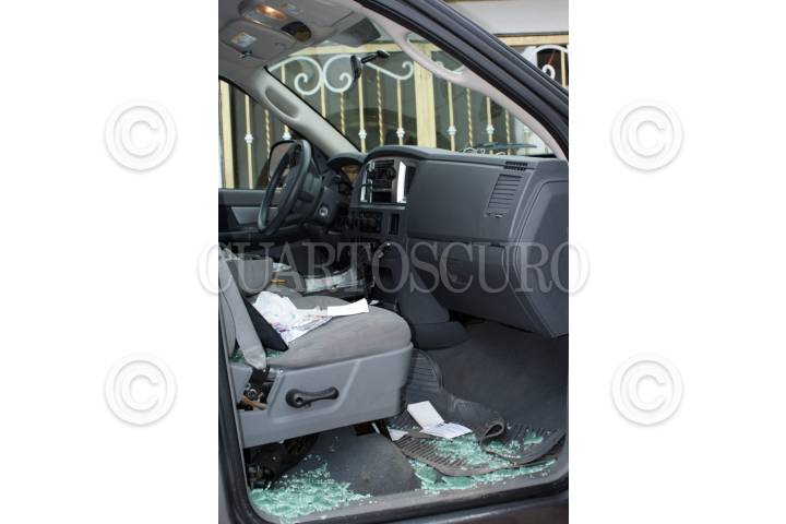 HUIMANGUILLO, TABASCO, 12JULIO2009.- El diputado federal con licencia y precandidato a la alcaldía de esta municipalidad por el PRD; Francisco Sánchez Ramos denunció esta tarde que hace responsable a los actores políticos del PRI por al atentado ocasionado en su camioneta pick UPS tipo Ram 2500 color gris y con placas de circulación VP 03668. Según señala que los malhechores llegaron a su domicilio ubicado en la calle Jacinto López numero 21 del Centro, donde rompieron los cristales y forzaron la unidad con la intención de robársela pero minutos antes lograron robarle documentación personal valiosa. FOTO: MARCO POLO GUZMÁN HERNÁNDEZ/CUARTOSCURO.COM