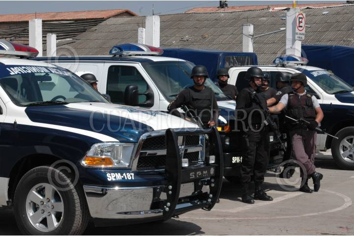 TULTITLAN, EDO. DE MEX., 20FEBRERO2009.- Elementos de Seguridad Pública y Tránsito Municipal de Tultitlán durante la inauguración del centro de monitoreo para el buen desempeño de ambas corporaciones. FOTO: MARIO NULO/CUARTOSCURO.COM