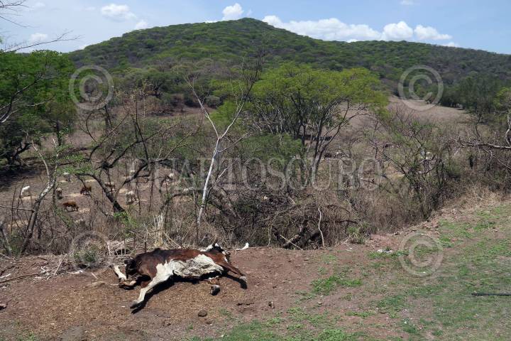 El cadáver de una res quedo a un costado de la carretera que conduce a la comunidad del Limón de Cuauchichinola, en la Reserva de la Biosfera Sierra de Huautla.