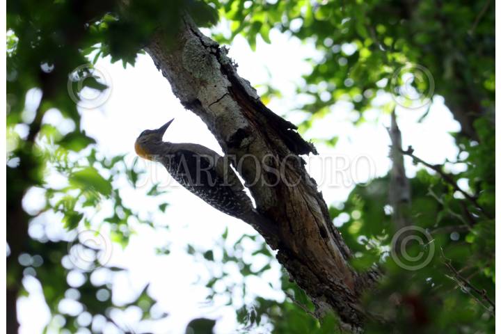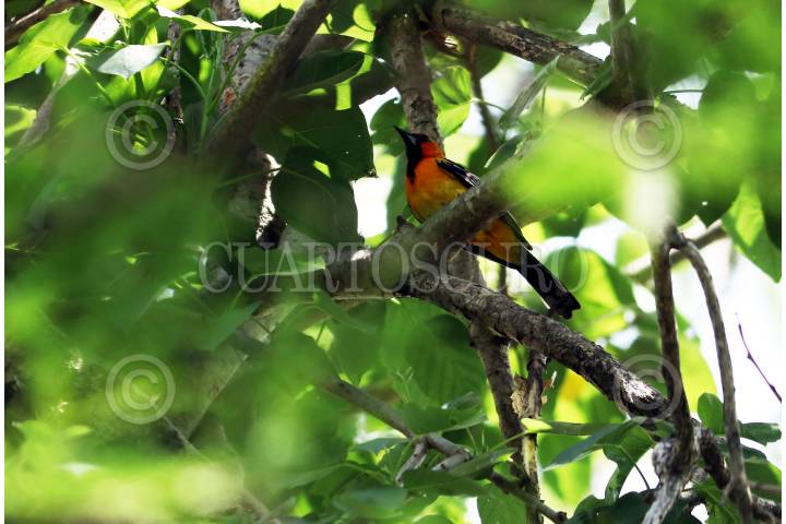 Un ave de colores negro y amarillo en medio de la floresta en la Reserva de la Biosfera Sierra de Huautla.