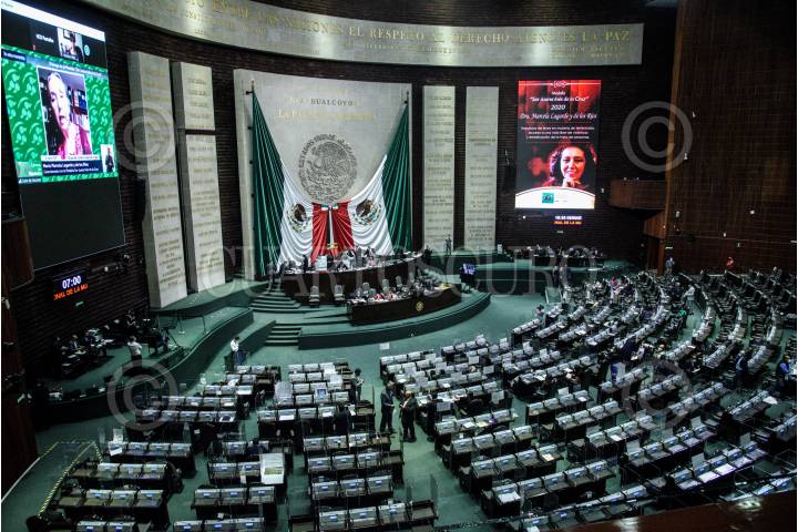 María Marcela Lagarde, galardonada con la Medalla "Sor Juana Inés de la Cruz", dirigió un mensaje de forma temática ante el pleno de la Cámara de Diputados.