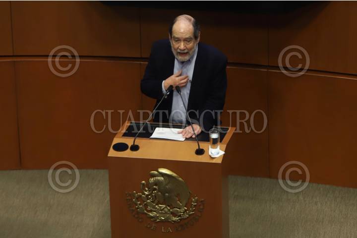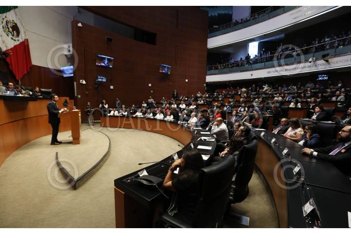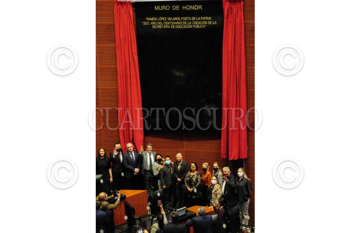 CIUDAD DE MÉXICO, 22FEBRERO2024. Ceremonia solemne por la develación de la inscripción de la leyenda: “Carlos Pellicer Cámara, el Poeta de América", en el muro de honor del Senado de la República. FOTO: EDGAR NEGRETE LIRA/CUARTOSCURO.COM