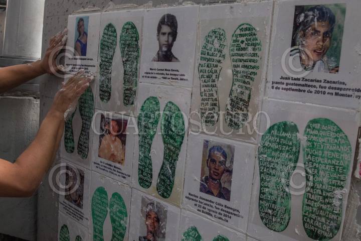 Madres de migrantes centroamericanos realizaron el muro de la memoria, en el cual se colocaron mosaicos con los rostros, nombre y fecha de desaparición de sus hijos en nuestro país. La instalación fue colocado frente a la instalaciones de la Fiscalía General de la República, de la cual acusan no les da ninguna respuesta.