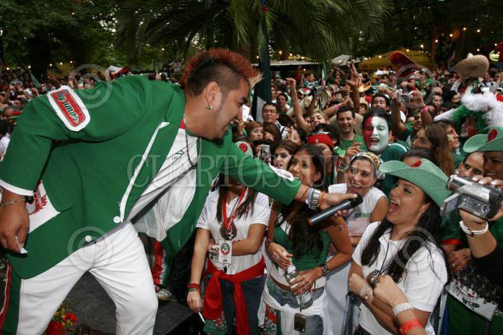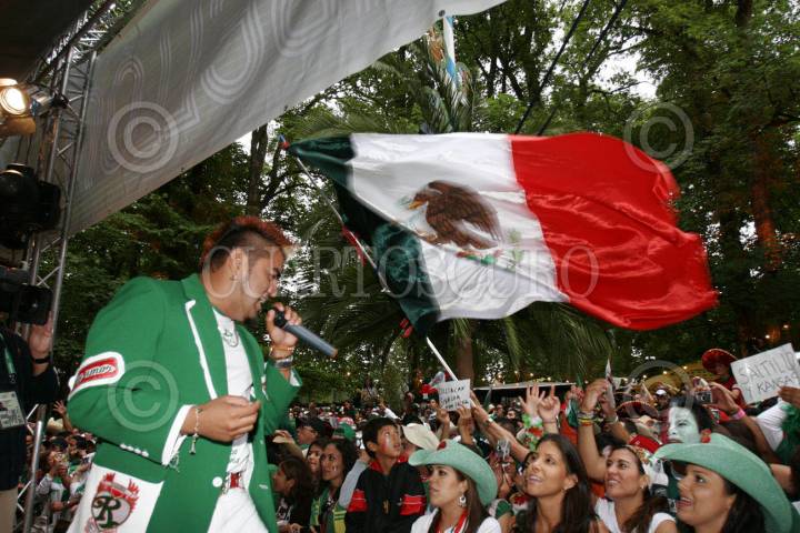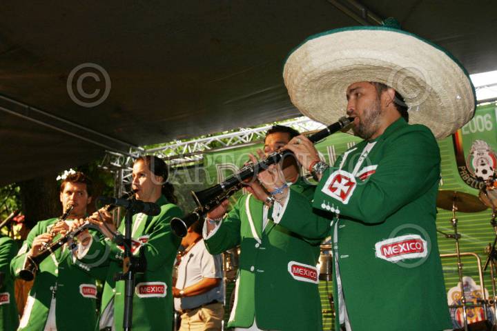 HANNOVER, ALEMANIA 16JUNIO2006.- Los integrantes de la banda el Recodo de Don Cruz Lizarraga, quienes por más de una hora hicieron vibrar y recordar a los más de 15 mil aficionados mexicanos, presentes en ese pais sede del Mundial de Futbol. FOTO: EL RECODO/CUARTOSCURO.COM