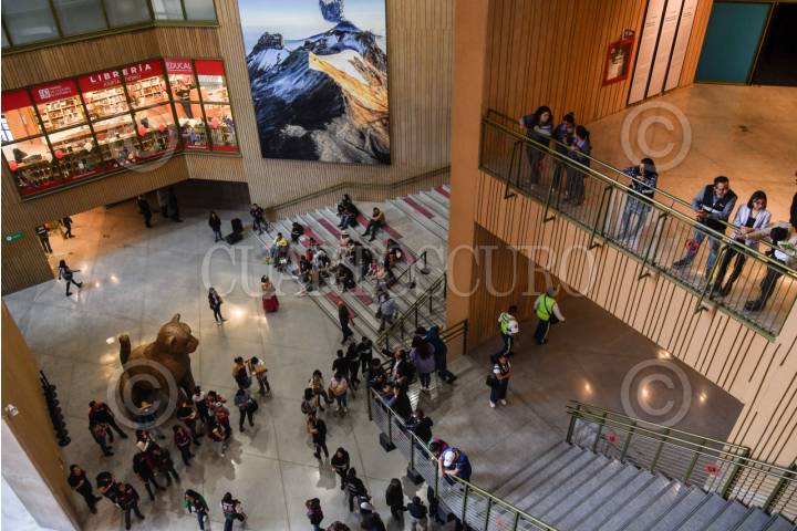 CIUDAD DE MÉXICO, 13JUNIO2025.- Jóvenes graban durante el recorrido a medios durante la inauguración de la exposición Tiburones (muestra en colaboración del Museo de Historia Natural de Nueva York y la Fundación Coppel, así como el museo Yancuic) en las inmediaciones de dicho recinto en la alcaldía Iztapalapa, que podrá ser visitado hasta octubre del presente año. FOTO: GALO CAÑAS/CUARTOSCURO.COM