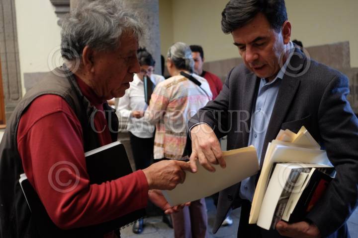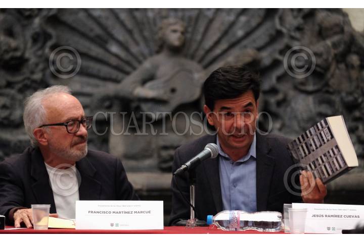 CIUDAD DE MÉXICO, 20MAYO2019.- Francisco Martínez Marcue y Jesús Ramírez Cuevas, vocero del Gobierno de la República durante la presentación del libro "1968, Aquí y Ahora, a cincuenta años del Movimiento Estudiantil Testimonios y Reflexiones", la cual se realizó en al Museo de la Ciudad de México. FOTO: GRACIELA LÓPEZ /CUARTOSCURO.COM