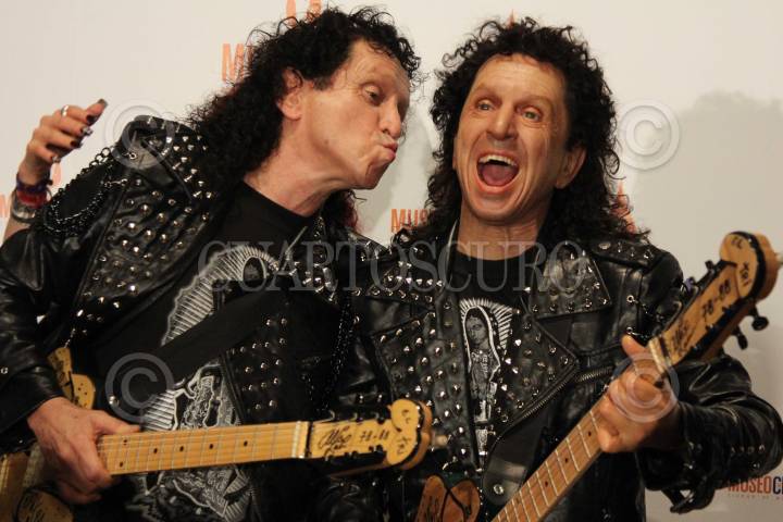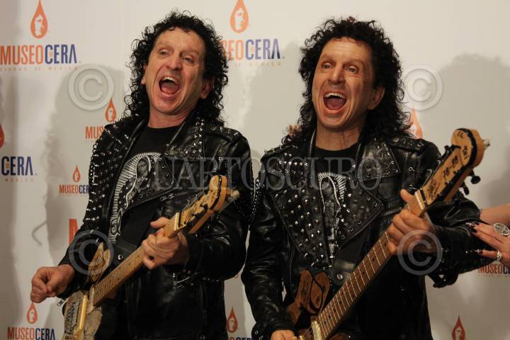 MÉXICO, D.F., 17OCTUBRE2013.- Develan la figura de cera del cantautor y vocalista del TRI Alex Lora en el museo de cera, durante la develación lo acompañaron su esposa Chela Lora y su hija Celia Lora. FOTO:SAÚL LÓPEZ /CUARTOSCURO.COM