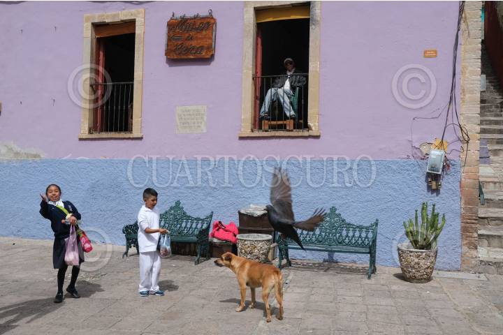 GUANAJUATO, GUANAJUATO, 24OCTUBRE2019.- Durante la tarde niños alimentan a las palomas que permanecen enfrente del Museo de Cera. FOTO: GRACIELA LÓPEZ /CUARTOSCURO.COM