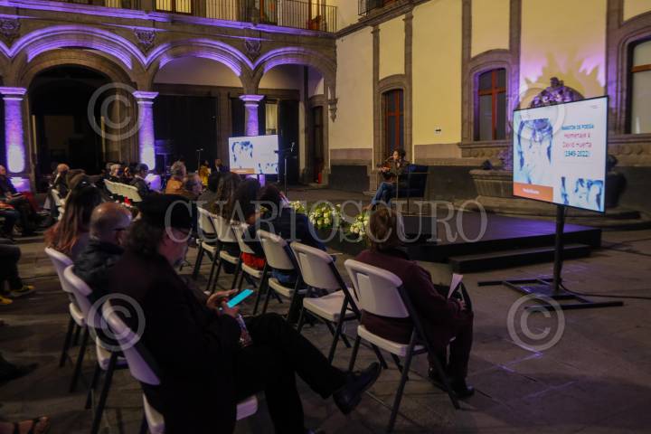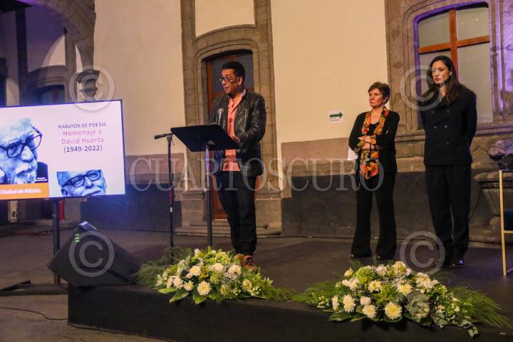 Homenaje a David Huerta, con un maratón de Poesía. Verónica Munguía viuda de Huerta y Claudia Curiel de Icaza.