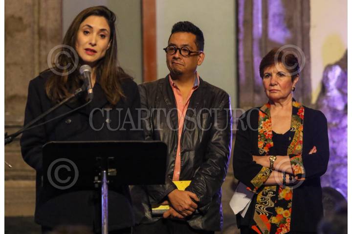 Homenaje a David Huerta, con un maratón de Poesía. Aquí la viuda de Huerta, Verónica Munguía.