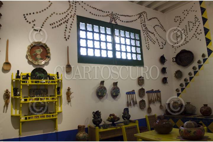 MÉXICO, D.F., 08JULIO2014.- A 60 años de su muerte y a 107 años de su nacimientos, la pintora Kahlo y su residencia "La Casa Hoy", hoy uno de los museos más populares de la Ciudad de México, continúa generando interés. Mensualmente el museo recibe un aproximado de 20 mil visitantes y es uno de los destinos obligados de la capital para extranjeros y locales. Objetos, documentos, fotografías,, pertenecncias más íntimas como sus vestidos y corsettes ortopédicos, cosméticos y joyería, son pequeñas pistas dentro de lo que fue el hogar de una de las mayores exponentes de la pintura en México. Situada en la esquina de las calles Lóndres y Allende en el centro de Coyoacán, la Casa Azul es un destino obligado en el marco del 107 aniversario del nacimiento de la pintora y esposa del reconocido muralista Diego Rivera. FOTO: MARÍA JOSÉ MARTÍNEZ /CUARTOSCURO.COM