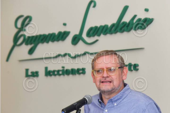 CIUDAD DE MÉXICO, 05JUNIO2025.- Jorge Reynoso Pohlenz, director del Museo de San Carlos, ofreció unas palabras durante el recorrido a medios por la exposición "Eugenio Recorrido a medios por la exposición "Eugenio Landesio: Las Lecciones del Arte" la cual será inaugurada a las 19 horas de este jueves y permanecerá hasta el 14 de septiembre de 2025. La muestra reúne obras, provenientes de más de veinticinco colecciones públicas y privadas, incluyendo óleos, dibujos, grabador y libros de Eugenio Landesio, pintor italiano. FOTO: MARIO JASSO/CUARTOSCURO.COM