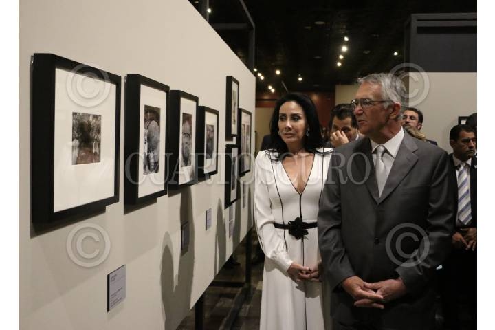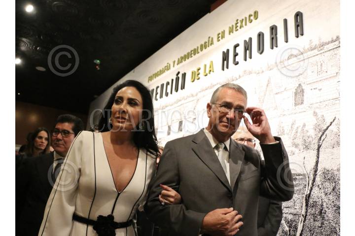 CIUDAD DE MÉXICO, 20NOVIEMBRE.- Ricardo Salinas Pliego, presidente de Televisión Azteca y su esposa María Laura Medina, durante la inauguración de la exposición "Invención de la Memoria", en la sala Tláloc del Museo Nacional de Antropología. FOTO: ROGELIO MORALES /CUARTOSCURO.COM