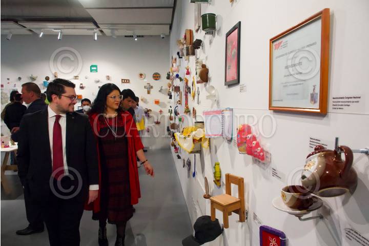 Alejandra Frausto y Carlos Martínez Velázquez, durante la inauguración del Museo Nacional de la Vivienda.