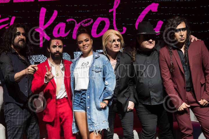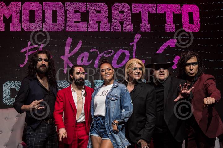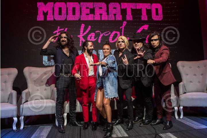 CIUDAD DE MÉXICO, 30MAYO2018.- La banda de rock pop Moderatto y la cantante de música urbana femenil Karol G, ofrecieron una conferencia de prensa para dar a conocer el lanzamiento de su nuevo sencillo donde colaboran la agrupación y la artista. FOTO: TERCERO DÍAZ /CUARTOSCURO.COM