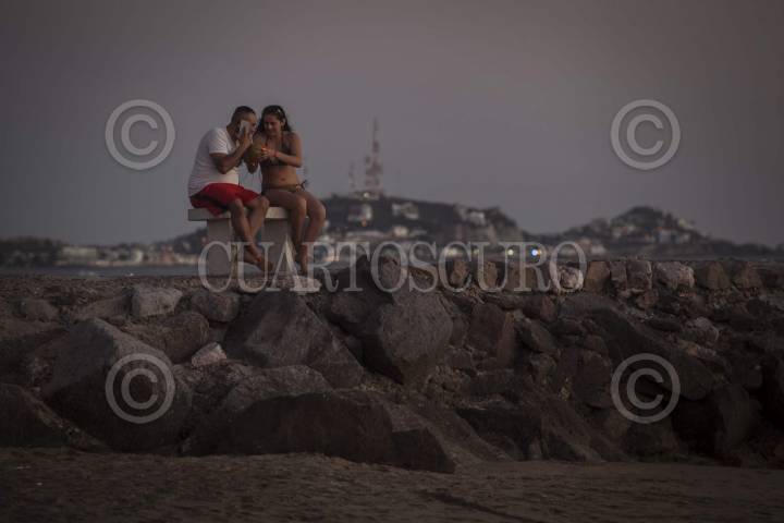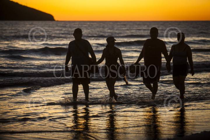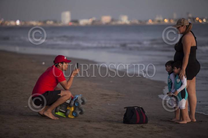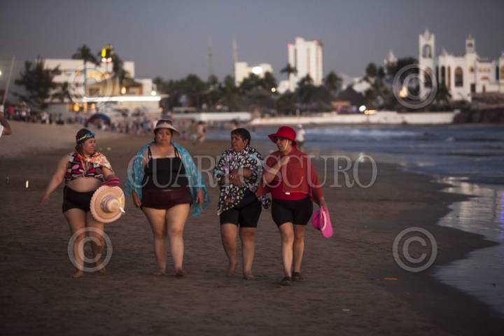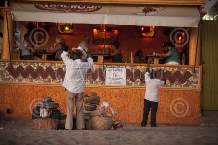 MAZATLÁN, SINALOA, 28FEBRERO2014.- Cientos de personas acuden a las bellas playas de Mazatlán para disfrutar de los atardeceres, caminar por la playa y seguir la fiesta con música de banda mientras que comerciantes aprovechan para vender distintos tipos de objetos alusivos al carnaval que vive este sitio turístico. FOTO: RASHIDE FRIAS /CUARTOSCURO.COM