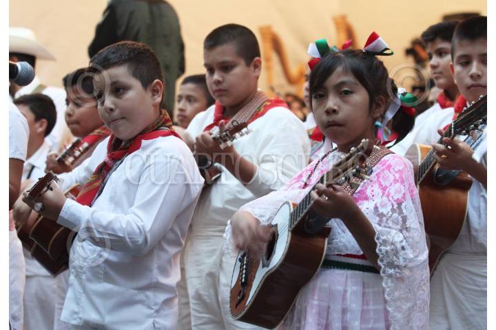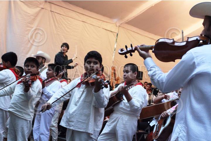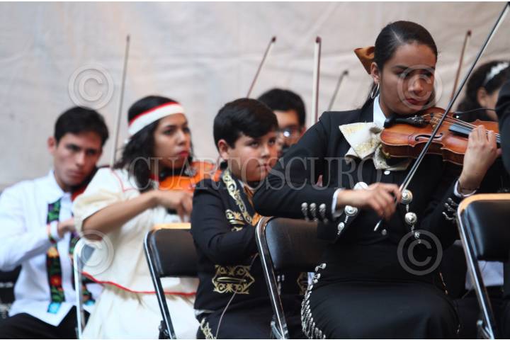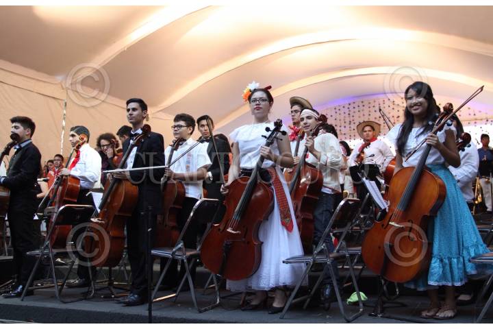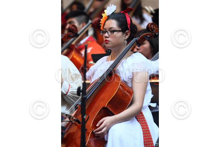 MÉXICO, D.F., 05DICIEMBRE2015.- Música en Armonía II, ensamble en el que participan 338 niños y jóvenes que representan a 78 ciudades y localidades en el país, ofrecieron un concierto en el Altar a la Patria como parte del Movimiento Nacional de Agrupaciones Musicales Comunitarias. FOTO: MARÍA JOSÉ MARTÍNEZ /CUARTOSCURO.COM